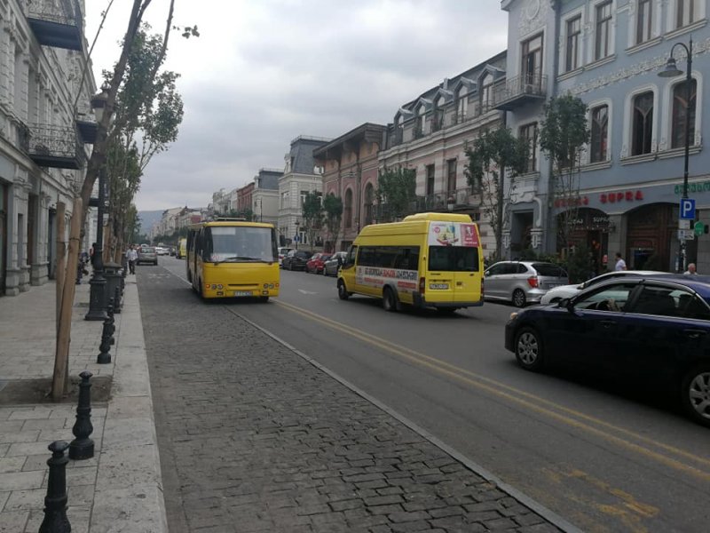 На фото автора: маршрутки “Богдан” і “Форд” на вулицях м. Тбілісі.