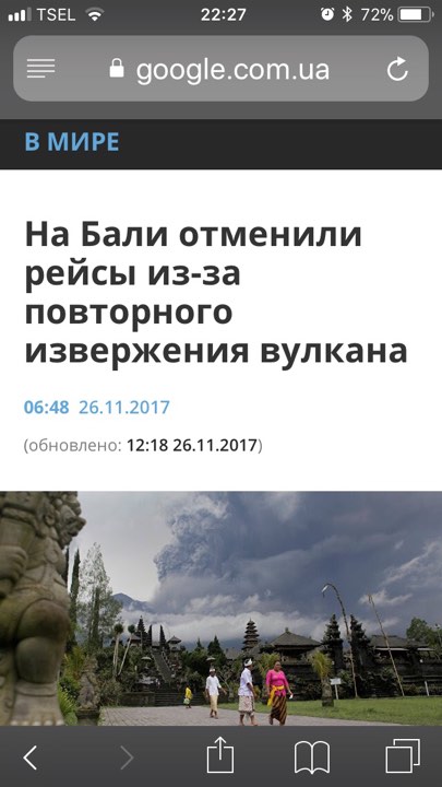 На фото Ігоря ЧЕРЕШИНСЬКОГО: так туристи на острові Балі дізналися не лише виверження вулкану, але й про скасування авіарейсів.