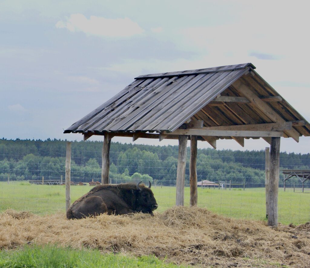 Зубри в нас також знаходяться в пансіонаті. Наша парочка малюків, як наші екскурсоводи люб’язно назвали Максим і Одарочка – це своєрідні діти війни серед тварин.