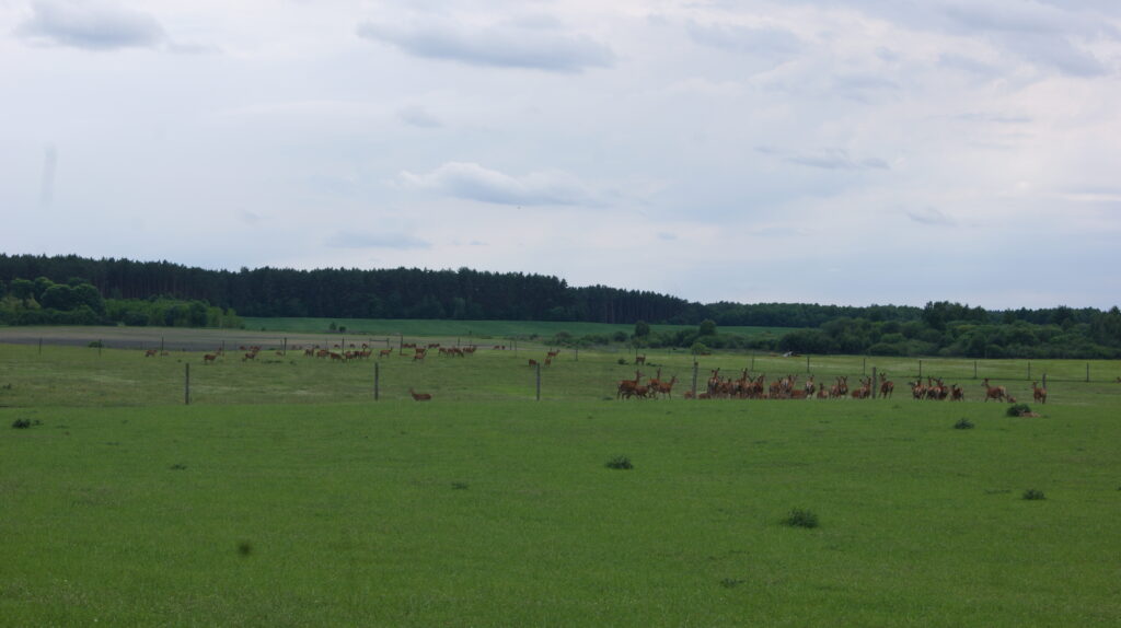 Почалося все з того, що в лютому 2018 року сюди завезли 80 одиниць Оленів благородних з країн прибалтики. Було 65 самиць та 15 самців. Різниця така між статями, бо це гаремна тварина, напевно Ви чули що самець олень – це султан від природи, який живе не з однією самкою, йому потрібно декілька.