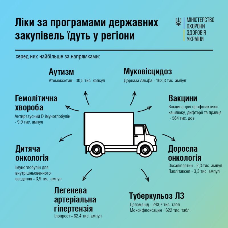 Лише за минулий тиждень у регіони відправлено ліків загалом на 186 млн грн. Серед них: