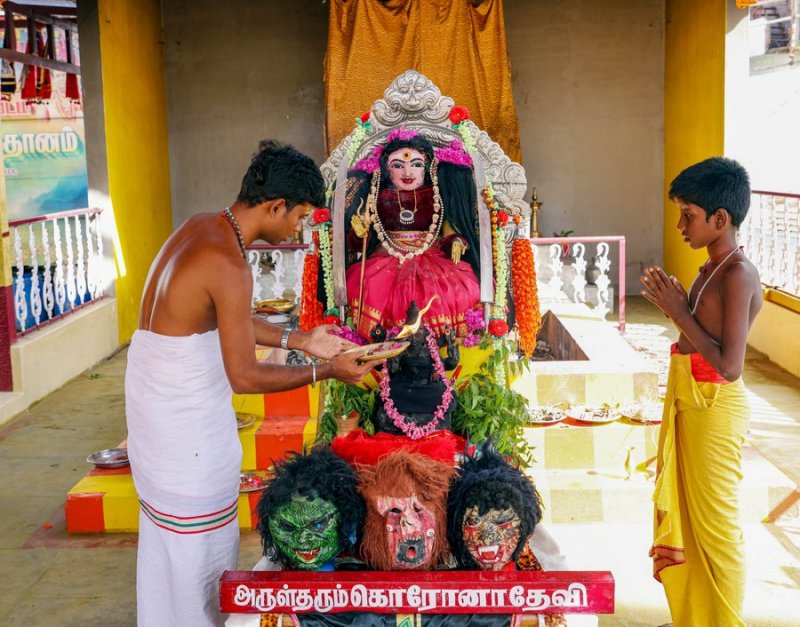 новому ідолу «Короні Деві» – богині коронавірусу. Щодня їй співають молитви, залишають