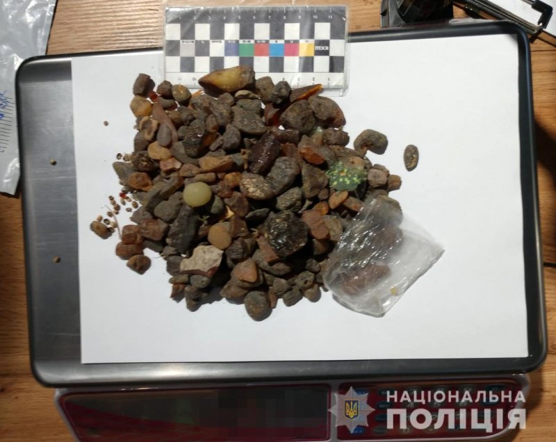металевий предмет схожий на кастет, близько 300 г каміння бурштину сирцю,