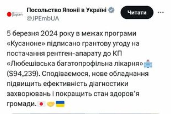У церемонії підписання грантового договору взяли участь Надзвичайний та Повноважний Посол Японії в Україні пан Мацуда Кунінорі, представники Фонду боротьби з раком та директор Любешівської багатопрофільної лікарні Сергій Герець