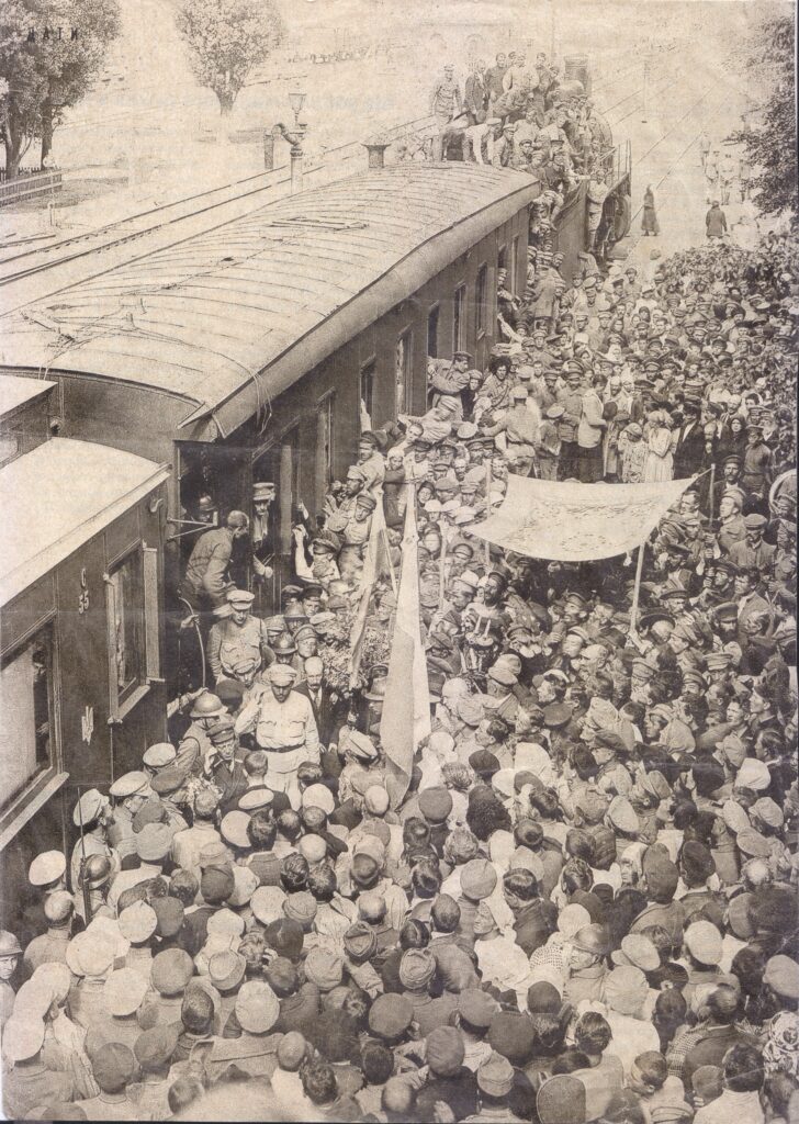 На фото пресслужби Луцької міської ради та спільноти Історія залізниць України: експозиція до Дня Соборності; прибуття Симона Петлюри у Фастів, 19 серпня 1919 року.