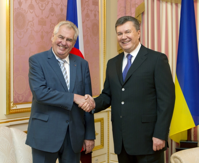 На фото прес-служби Президента України: зустріч Мілоша Земана і Віктора Януковича в Києві.