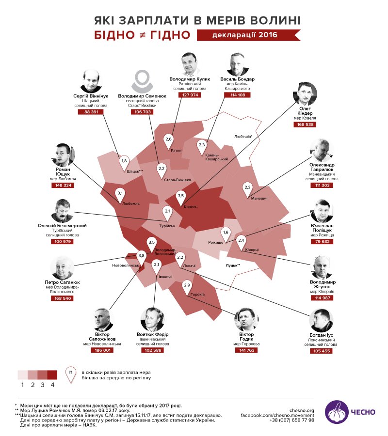 рух ЧЕСНО, який порівняв зарплати очільників міст та селищ Волині, аби зрозуміти,