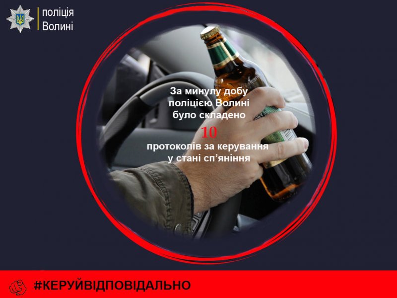 минулу добу 10 водіїв, котрі керували транспортом у стані сп’яніння.