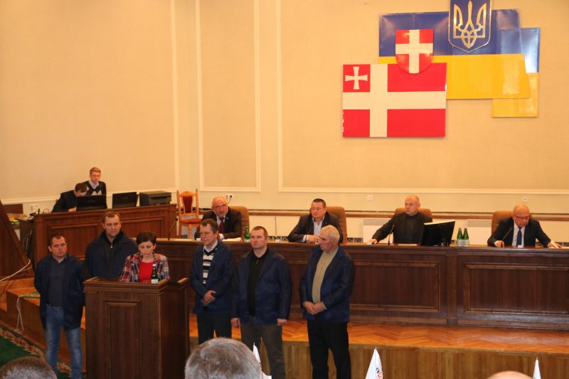працівники ДП «Волиньторф», а в президії біля керівництва облради Романа Карпюка, Олександра Пирожика та Ігоря Палиці (зліва направо) сидить Володимир Гунчик.