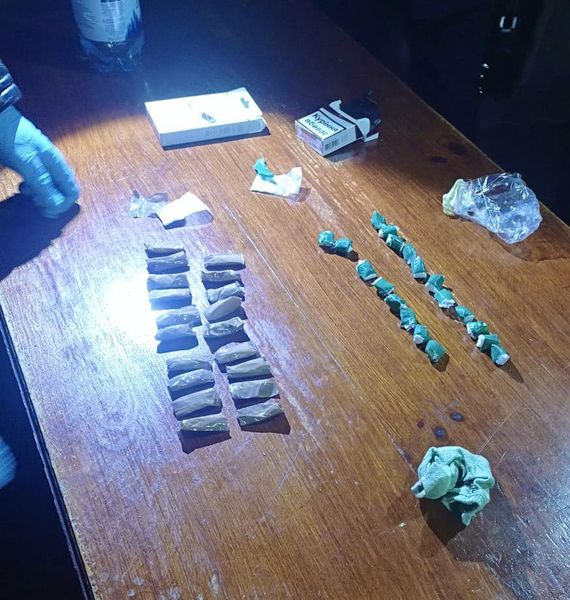 Під час поверхневого огляду в сумці одного з чоловіків було виявлено розріз в кармані, а там знаходився шкарпеток в середині з згортками із невідомою речовиною, зовні схожою на наркотики.