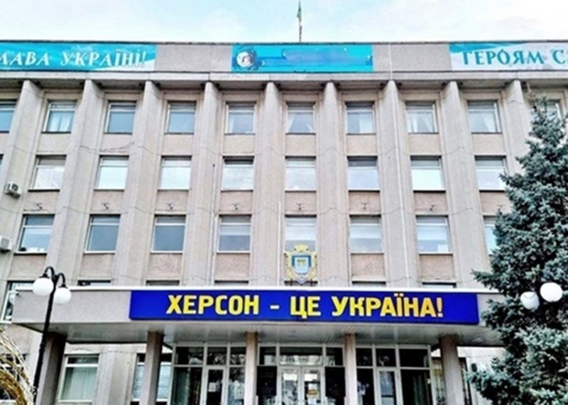 На фото порталу «Кореспондент. нет»: адміністративна будівля м. Херсона в перші дні рашистської окупації вже