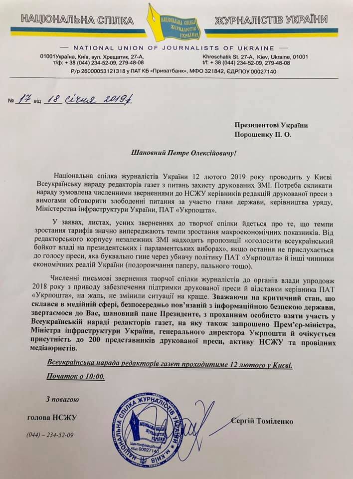 пов’язаній з інформаційною безпекою держави, НСЖУ офіційно запросила взяти