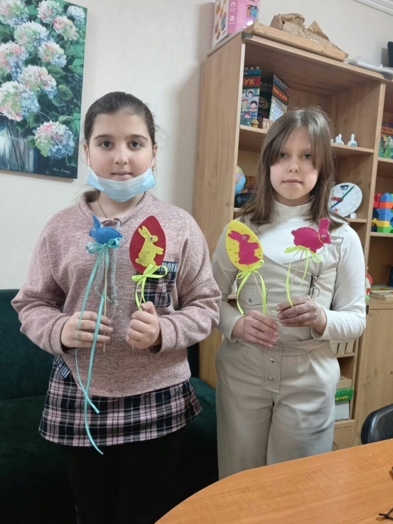 Під час занять діти познайомились з традиціями святкування Великодня, історією походження святкової атрибутики, обговорювали великодні звичаї, а також власноруч  виготовили сувеніри для декорування великодніх кошиків.