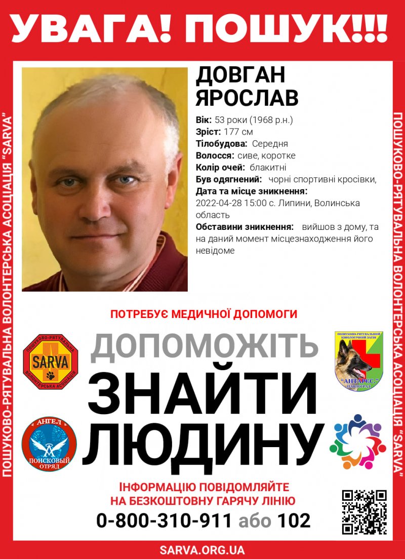 «Розшукується Ярослав Довган, 53 роки (1968 р.н.)