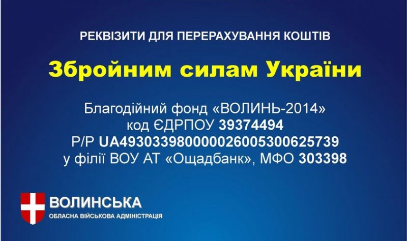Благодійний фонд «ВОЛИНЬ-2014», код ЄДРПОУ 39374494,