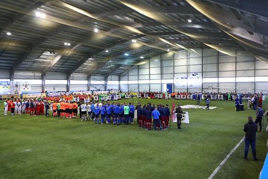 На фото з сайту Федерації футболу учасників АТО офіційне відкриття кубку.