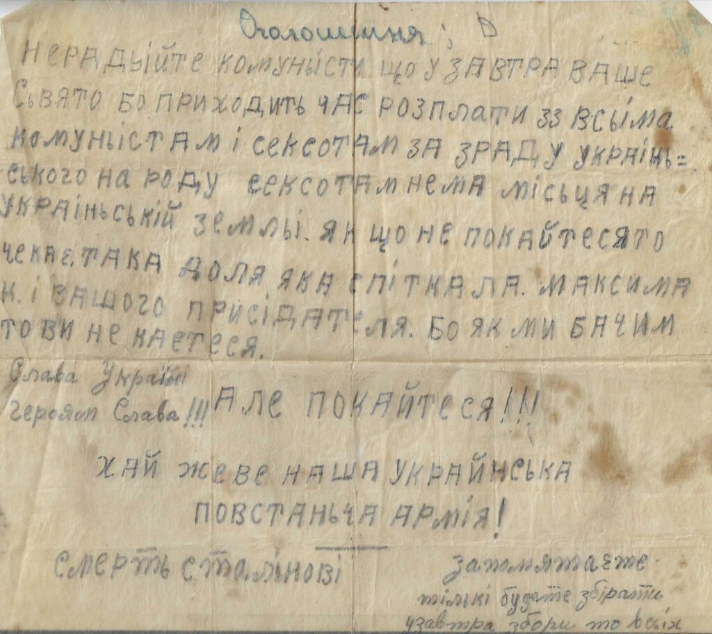 Утім, і після 8 травня 1945 року воїни УПА, хоч і знесилені міжусобицею та деморалізовані повною відсутністю допомоги від західних країн-переможниць, продовжували боротьбу з червоними окупантами.