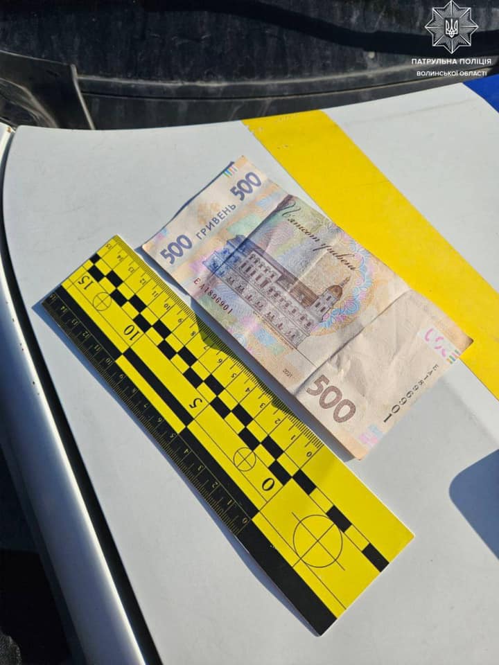 Наступного дня у селі Красів Луцького району водій трактора не впорався з керуванням та в’їхав у паркан. На місце події виїхали поліцейські аби задокументувати факт автопригоди та встановили, що водій перебував за кермом у стані сп’яніння. Під час оформлення матеріалів по ДТП 50-річний водій за непритягнення його до адміністративної відповідальності за ст. 130 та ст.124 Кодексу України про адміністративні правопорушення надав працівникам поліції неправомірну вигоду у сумі 50 Євро. Гроші вилучили.
