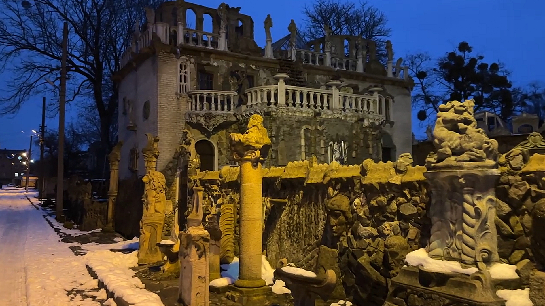 На жаль, ранні волинські сутінки завадили розглянути в деталях усіх фантастичних звірів та місце, яке вони населяють. Однак викликали неабиякий інтерес у воїнів, що залюбки знімкували паркан із кам’яної мозаїки, мадонн, янголів та атлантів поруч із казковими левами на барельєфах.