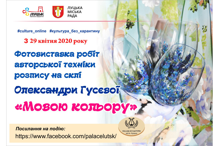 Впродовж цього тижня на сторінці Палацу культури міста Луцька експонується однойменна виставка виробів зі скла, створених мисткинею Олександрою Гусєвою.