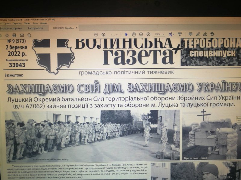 березня спецвипуск «Волинська газета» + «Територіальна оборона».