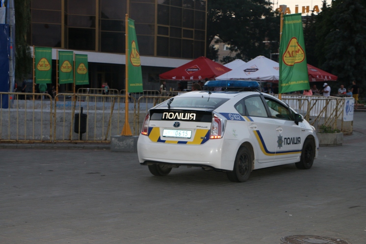 На фото Сергія ШРАМЧУКА: замість того, щоб виявляти та притягувати до відповідальність порушників ПДР, патрульна машина стоїть на футбольній фан-зоні Театрального майдану…