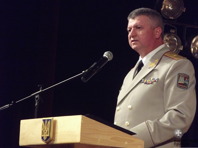 На фото «Волинської правди»: генерал-майор Володимир Мельникович в облмуздрамтеатрі вітає особовий склад і запрошених із 20-річчям створення СБУ.
