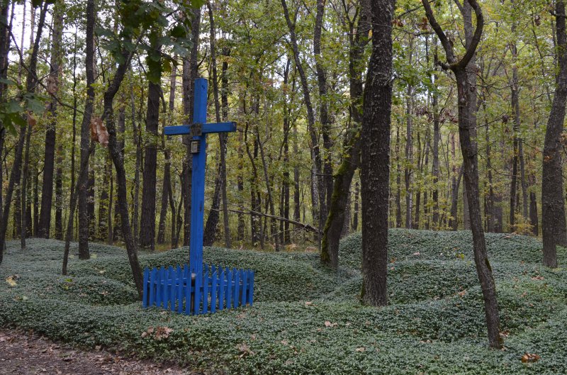 На фото автора: хрест на місці загибелі 5 вояків УПА в урочищі Барвінок.