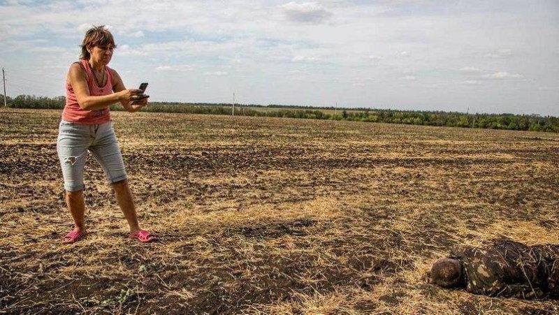 На фото з соціальних мереж: донецька “баба Яга” фотографує полеглого українського солдата…