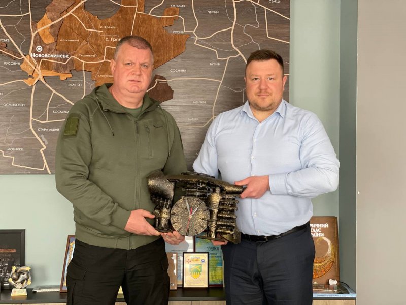 Волонтер Олександр Мазурок передав міському голові Нововолинська Борису Карпусу подарунок від військових з 14 бригади.