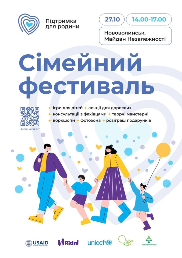 У п’ятницю, 27 жовтня, у м. Нововолинськ на майдані Незалежності з 14:00 до 17:00 пройде “Сімейний фестиваль”.