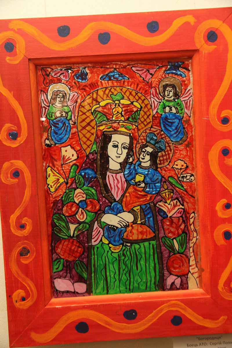 На фото Петра КРИВОШЕЯ: ікона Богородиці, намальована бійцем ато Сергієм Попіком.