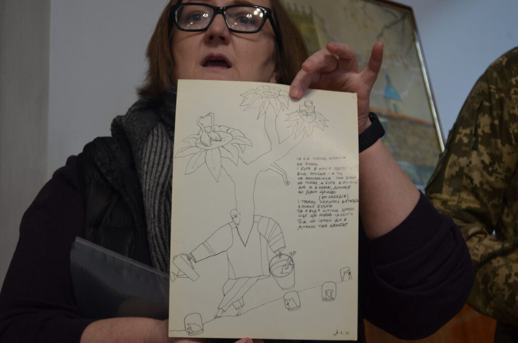 Працівниця бібліотеки Віра Кумановська, дружина автора ілюстрацій до декількох книжок Володимира Данилюка у виконанні незабутнього художника Миколи Кумановського, вручила одну з його автентичних графічних робіт.