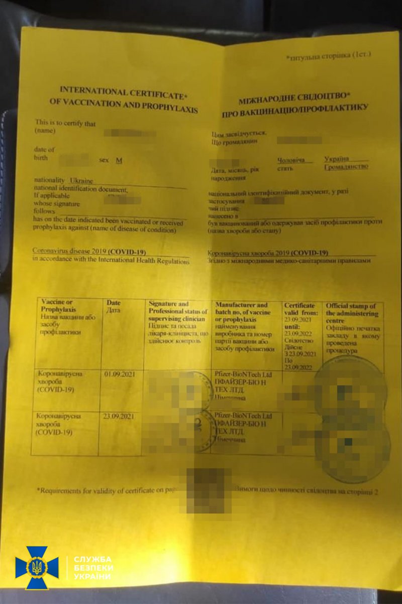 свідоцтва про вакцинацію проти COVID-19, його викрила Служба