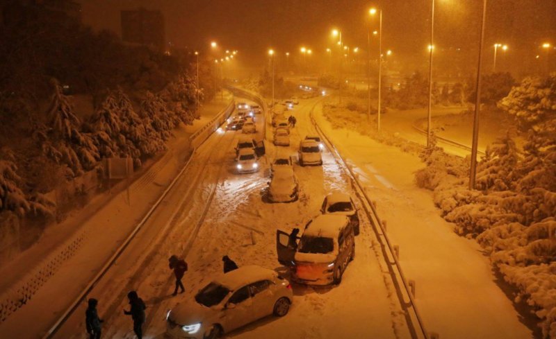 що зупинилися на автостраді A4 в Мадриді, а через хуртовину мешканців