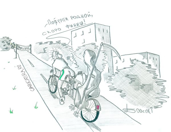 під переднім колесом. Потім до нього потихеньку-помаленьку починає до-хо-ди-ти…: