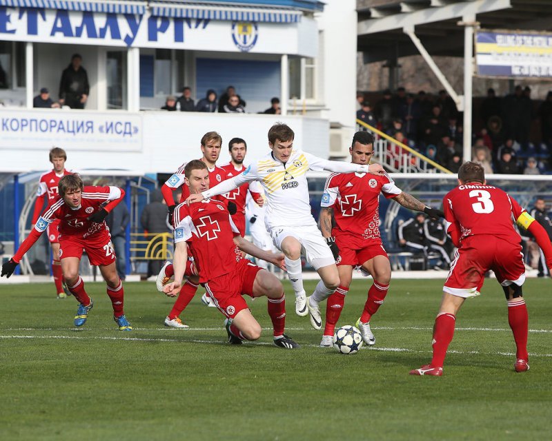 На фото прес-служби ФК «Металург» (Донецьк): колективний відбір м’яча приносить успіх і на полі суперника!