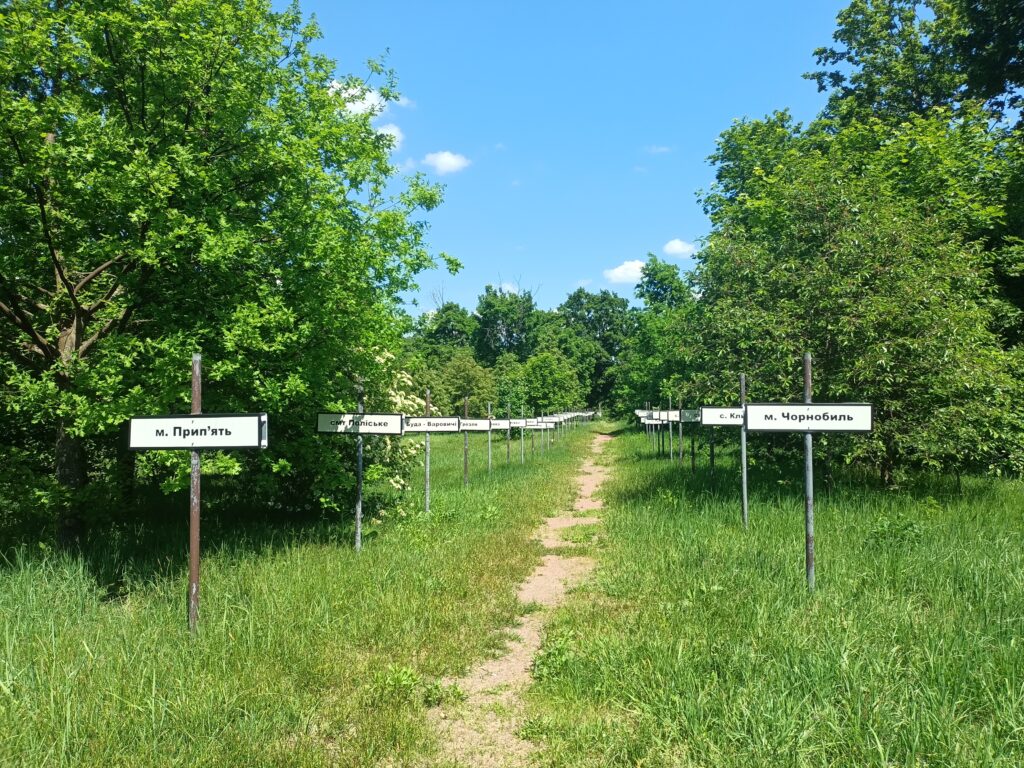Алея в пам’ять знищених у 30-клометровій зоні міст і сіл у місті Чорнобиль.