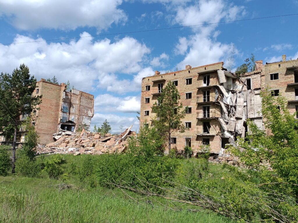Зруйновані російськими окупантами будівлі під час наступу на Київ у 2022 році.