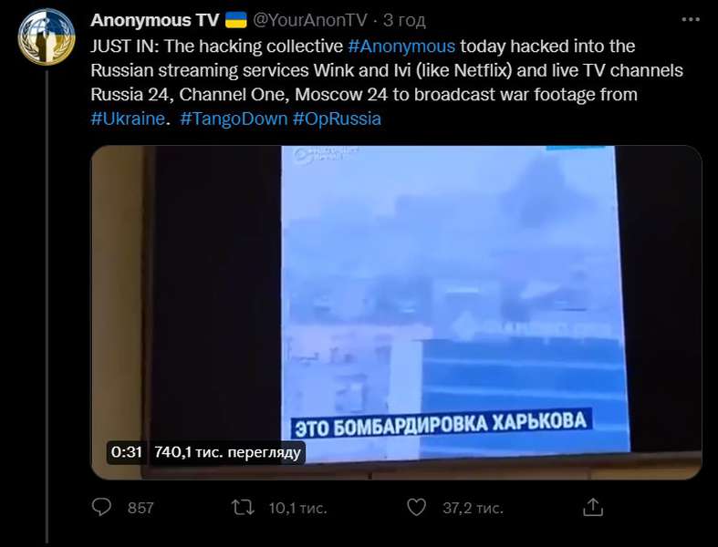 міжнародна мережа хакерів Anonymous знову зламала російські державні