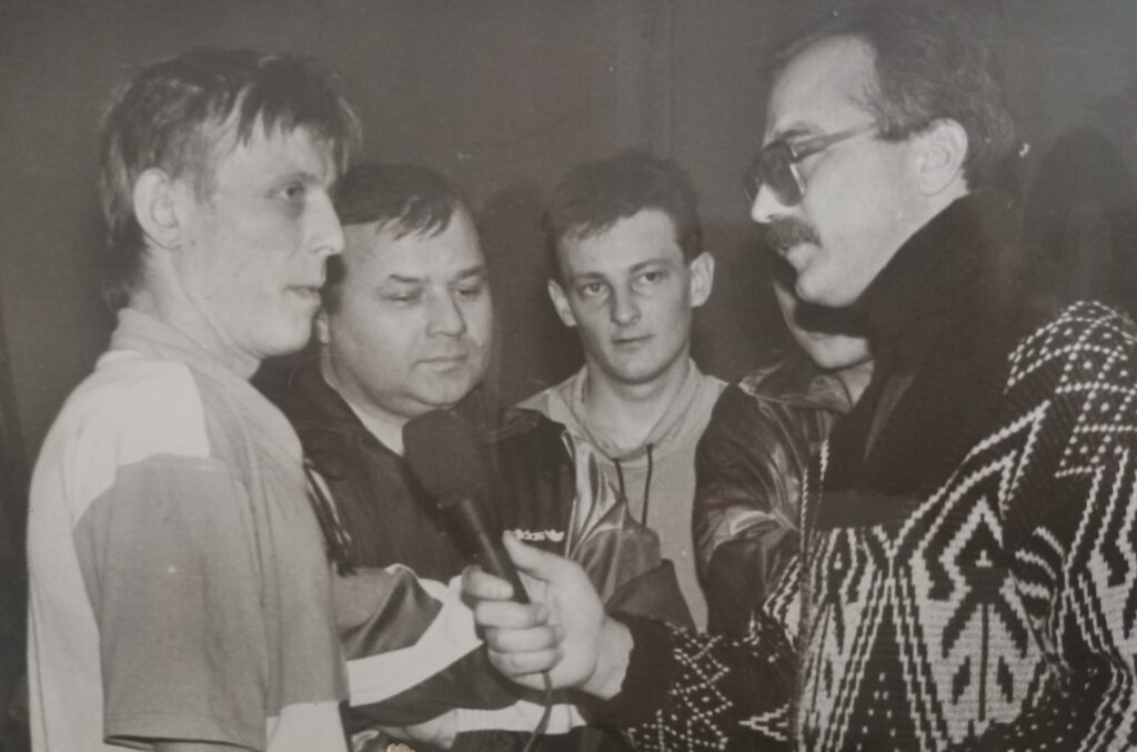 Василь Васильович (другий зліва) під час одного з футбольних матчів журналістів захищав ворота команди.