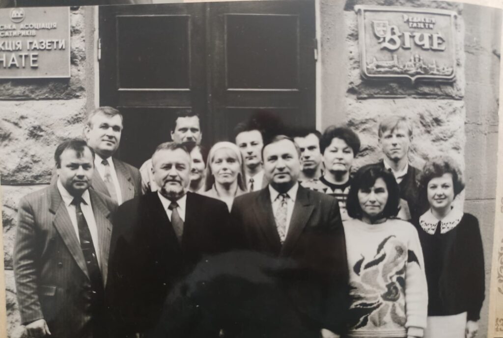 Люди, які працювали із Василем Простопчуком в одній газеті, біля колишнього редакційного офісу.