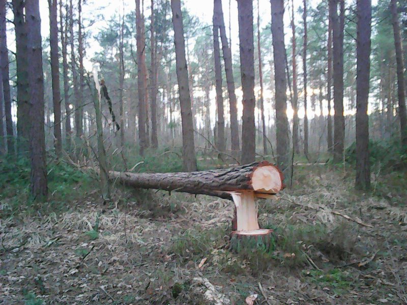 високі пні, невдало зрізані, розколені дерева, а верхи розкидані. Лісівники