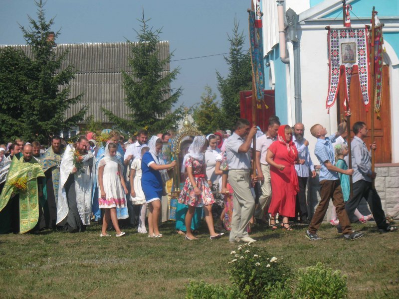 Вже традиційно було миропомазання, сповідь і причастя, молебень за здоров’я усіх прихожан. Після хресного ходу з чудотворними іконами, хоругвами та окропленням свяченою водою присутніх привітали благочинний Любомльського благочиння Василь Мельничук та настоятель Свято-Аннівського храму протоієрей Петро Границький. Напередодні разом із прихожанами він провів велику роботу з упорядкування храму, прилеглої території та місця майбутнього парку. Навіть проклали частину тротуару.