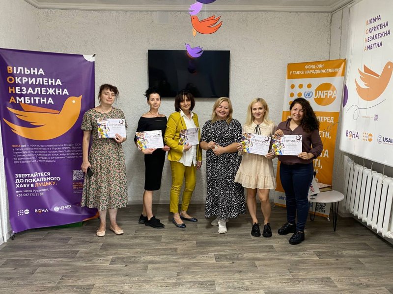 Можливість пройти ці курси безкоштовно жінки отримали завдяки проєкту «ВОНА хаб. Луцьк», який реалізовує Фонд народонаселення ООН в Україні (UNFPA) за фінансової підтримки Бюро USAID з питань гуманітарної допомоги (USAID&BureauforHumanitarianAssistance).