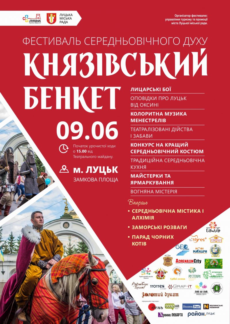 Лише один день на рік Замкова площа без автомобілів. Князь і його двір, лицарі і шляхетні пані, менестрелі і музичні гурти, актори і блазні, екзотичні танці і розваги, вправні ремісники і талановиті художники, вишукані страви і смачні напої, алхіміки і відьми, чорні коти і білі пітони і ще багато-багато цікавого, захопливого та загадкового на Князівському бенкеті!