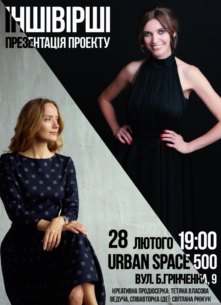 Вечір-презентація проекту “ІншіВірші” пройде 28 лютого в Urban Space 500 (вул. Б.Грінченка, 9). Початок о 19:00. Необхідна попередня реєстрація за посиланням.