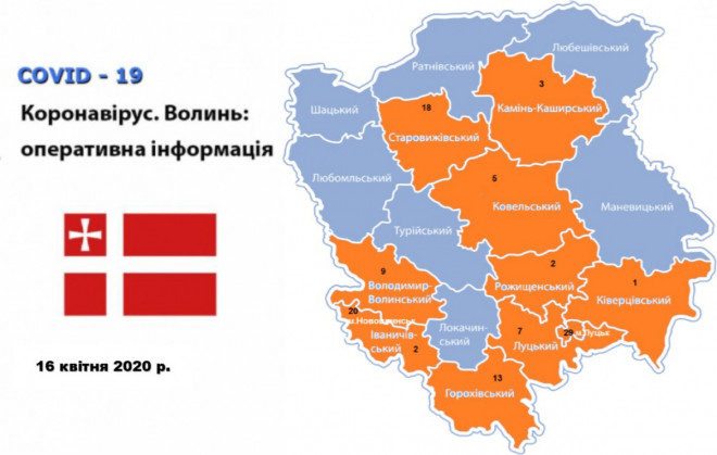 Станом на 9:30 год. 16 квітня на Волині зареєстровано 109 лабораторно підтверджених методом ПЛР випадків COVID-19, в тому числі чотири летальних.