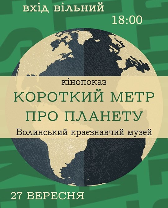 27 вересня о 18.00 команда Lutsk Night Cinema спільно з Молодіжним центром Волині у приміщенні музеї проведуть кінопоказ у рамках Глобального страйку за клімат. Покажуть короткометражні стрічки про зміни клімату, стан екології та суміжні теми. Після перегляду кожного фільму буде обговорення.
