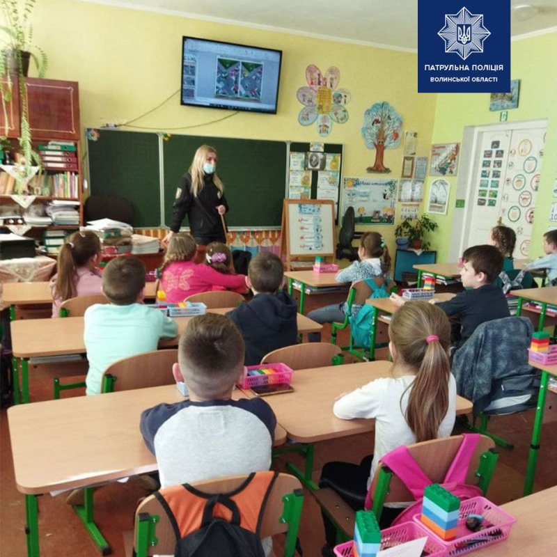 Опісля бесіди, школярі отримали від волинських патрульних пізнавальні книги про правила дорожнього руху та флікери.